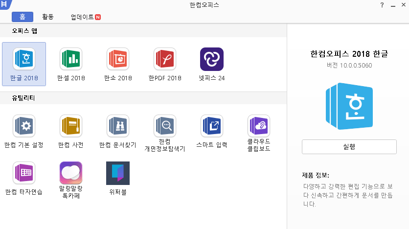 | 한글 (HWP) | 문서 작성, 표 편집, 출력 등 | 정식버전 동일 |
